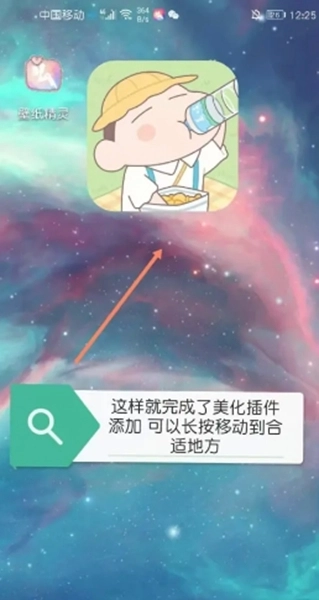 16、至此,美化插件添加完毕,长按即可将其移动至合适位置。