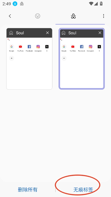 如需开启无痕浏览模式,只需点击右下角的三条杠,接着点击下方图标即可。