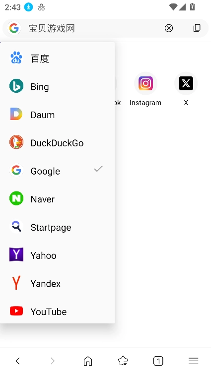 在页面的左上角,用户还可进行搜索引擎的切换操作。