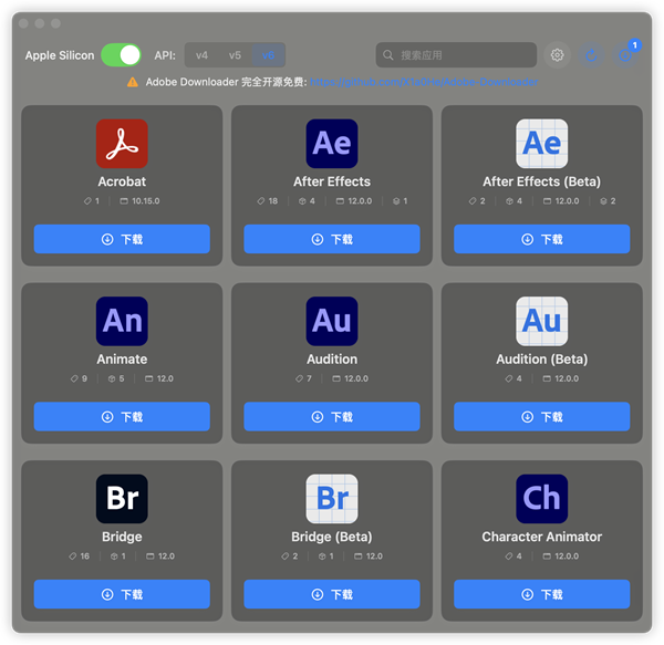 Adobe下载器MAC版是一款专为macOS用户打造的Adobe应用下载与安装助手,核心亮点在于提供了比官方AdobeCreativeCloud更灵活、更自由的软件管理方式。通过它,用户不仅可以选择下载不同版本的Adobe程序,还能根据自身需求切换多种语言版本,极大地方便了设计师、摄影师以及视频剪辑等专业用户在不同工作场景下的使用。相比于传统的AdobeCC固定更新机制,它打破了版本限制,让用户能够自由选择适合自己的版本环境,而不必担心兼容性或功能缺失的问题。
