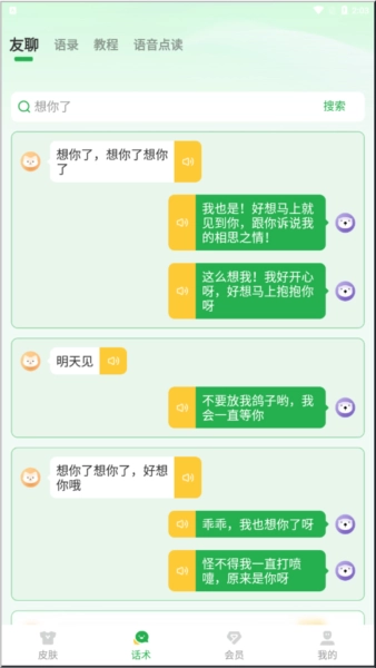 4、点击话术,这里有教你怎么聊天,怎么使用教程,语音点读等功能