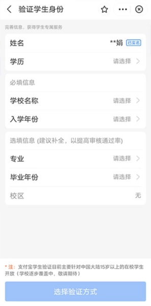 3、一年只有一次大学生认证的机会(千万不要搞错了)点击确认,选择好自己所读的学校后,输入学生卡上的学号即可。
