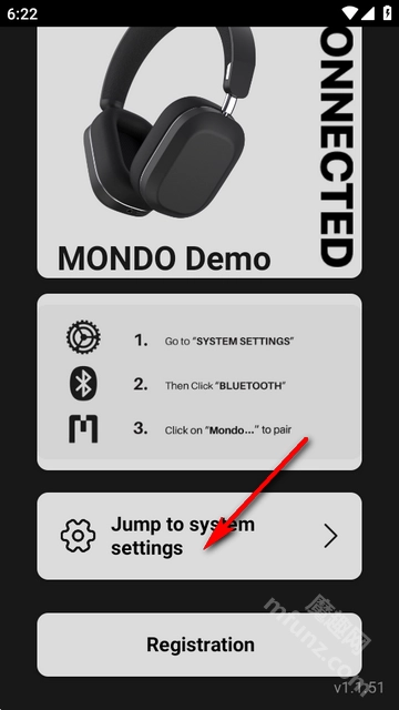 1、开启mondo耳机,然后点击设置按钮。
