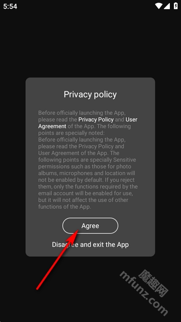 1. 开启mondo耳机,然后点击同意用户协议。