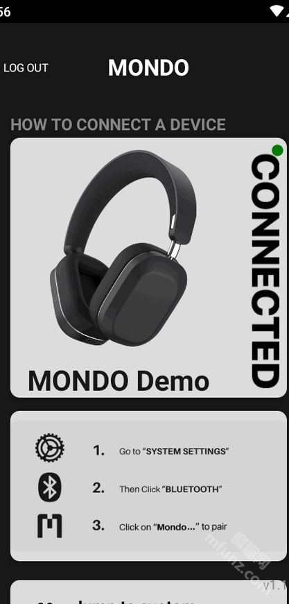mondo耳机软件连接耳机的步骤十分简单,只需三步就能将耳机和手机进行连接。方便大家控制耳机的音效、均衡器等,甚至包含了降噪模式等。还能在手机上对耳机进行固件升级,自动获取版本点击升级就可以了!