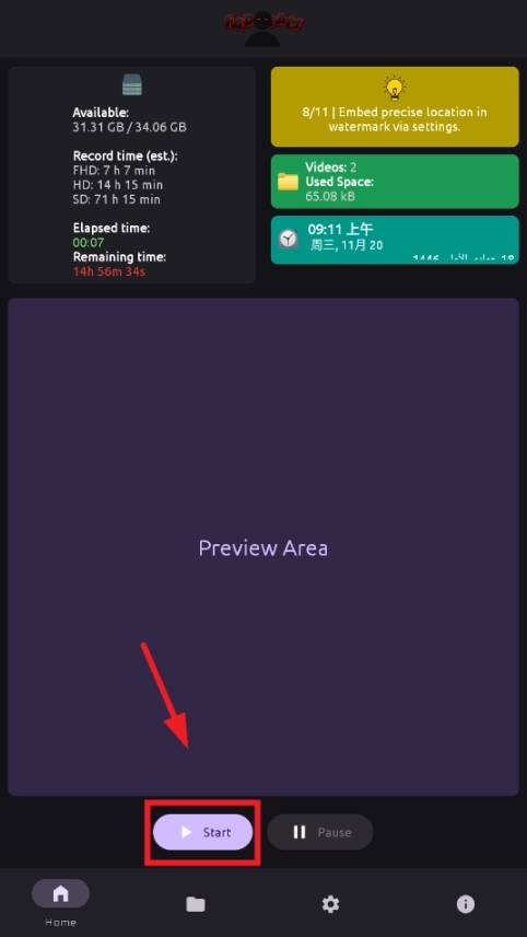 2、进入软件后,点击start,开始录制。