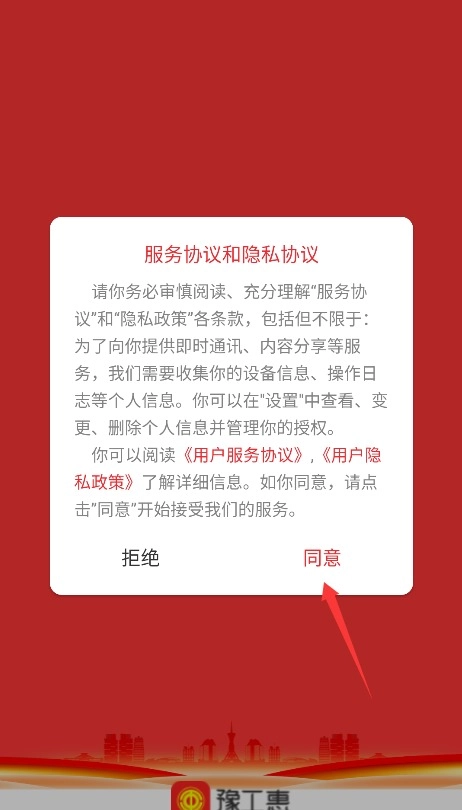 1首次使用时,需阅读平台的服务条款以及隐私政策,确认无误后,点击“同意”按钮方可进入应用。