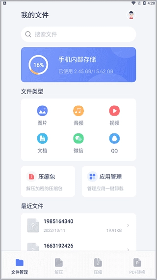 1、支持文件一键压缩和解压,不仅仅能够节省手机存储空间,还十分方便轻松传输各种文件;