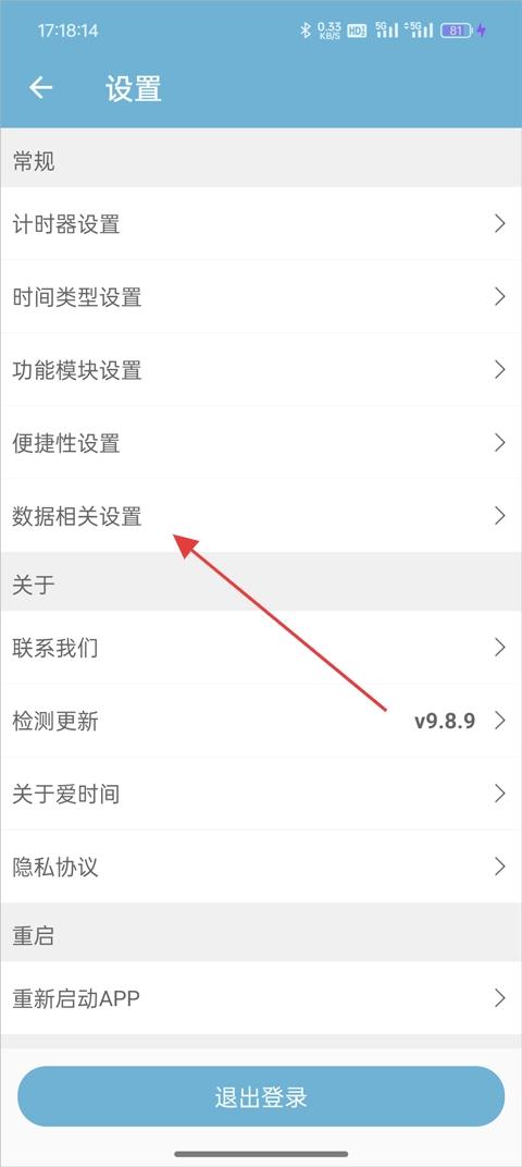 3、于设置页面的功能列表中,选取“数据相关”选项,进而进入数据管理页面。