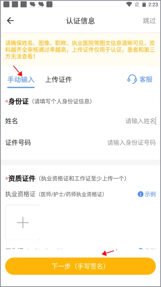 3. 其二是上传证件照片,填完信息点击下一步。