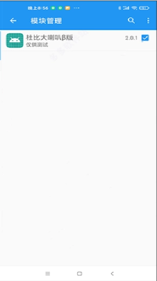 4. 安装完毕后,返回太极,在模块管理里勾选杜比大喇叭即可启用,点击它还能够进行功能配置,开启UnblockNeteaseMusic。
