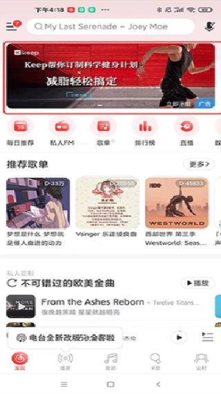 7. 它还具备简单的精简功能,能够去除歌单和发现界面的banner广告图,使界面更为清爽。