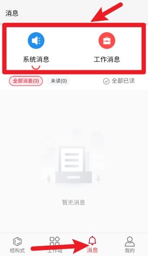 4、在消息中心页面可查看系统通知和工作相关消息,便于获取软件更新及任务提醒。