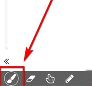 2、进入手绘画图界面后,点击左下角的 “画笔” 图案,打开画笔选择菜单;