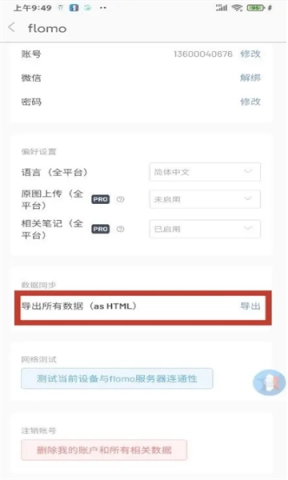 在软件界面中,轻点底部的【flomo】按钮,即可开启导出流程。