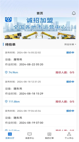 想找吊车帮忙?只需一键就能随时下单!附近的司机们会立刻响应,仿佛接到了紧急召唤一般,而且会有多位司机同时给出报价,你可以根据自己的实际需求轻松挑选合适的,这样就能快速解决找吊车的难题,实在是太方便了。