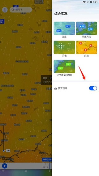 另外点击实况,还能开启预警信息。