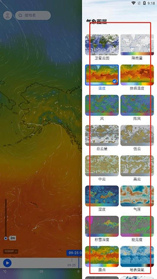 这里汇集了各类气象数据可视化图层,包括云系分布、降水实况、气温变化、人体感知温度、风力风向等多种类型,你可以根据需求挑选合适的图层进行查看。