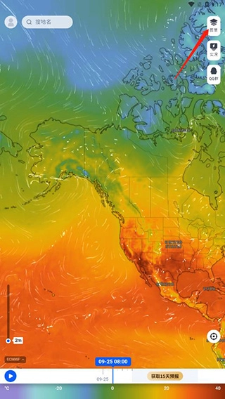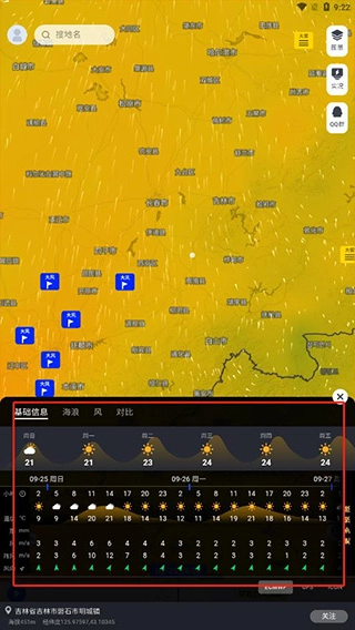 要是把图层切换成温度,就能迅速了解该地区的温度情况。