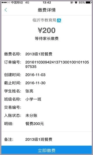 家长朋友们通过该应用线上即可完成缴费。