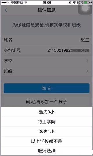 选择孩子正确的学校与班级,确定后绑定成功