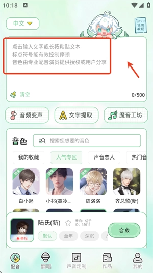 打开进入软件,在配音页面输入想要生成语音包的文本