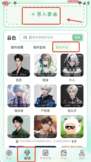 还可以导入歌曲,使用想要的声音翻唱这首歌曲