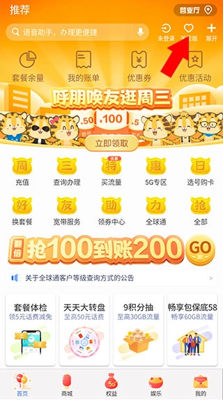 首先我们打开首页,点击右上角的【爱心图标】就能切换到关爱版。