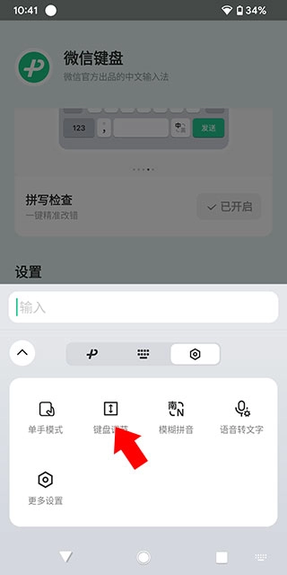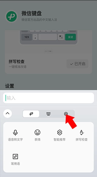 接下来要开启微信键盘,完成教程里的启用步骤后进入对应的页面,接着点击页面下方的相关选项,就能打开微信键盘的输入界面了。