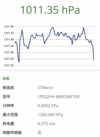 在传感器界面里,点击“压力传感器”选项(也就是气压计),就能查看当前的基础气压数值(该数值没有统一标准)。