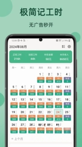 极简记工时是一款高效的时间管理与薪资计算工具,完全根据用户的实际需求定制而成。简洁直观的界面让记录工时和薪水变得轻松便捷,保证每一笔收入都能精准无误。而且,它还提供的纯净使用环境,借助多种统计模式,用户可以清晰地了解自己的薪资分布状况。