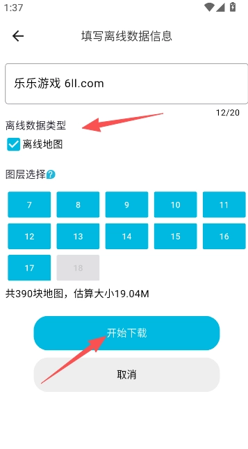 在离线地图数据页面填写时,先输入地图名称,再选择图层即可开始操作。