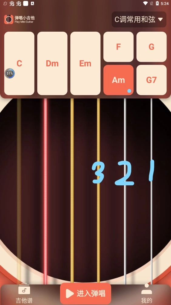 吉他模拟器对琴弦震动的动画效果进行了优化,让弹奏过程中的视觉反馈更加逼真,从而增强了用户的沉浸感。