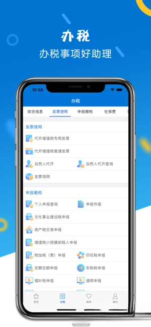 涵盖企业开业登记、增值税及所得税申报、电子发票开具、社保缴费等功能,个人和企业用户都能在同一平台完成大部分常规税务事务。