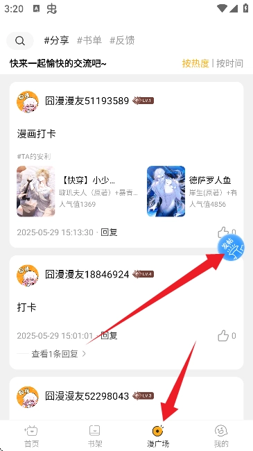 进入后填写发帖的标题与内容、上传图片,点击发布就能完成操作,以此开展交流互动、分享书单、感悟等内容。