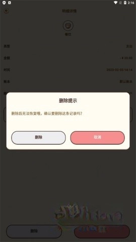 在收支记录中找到要删除的账本;