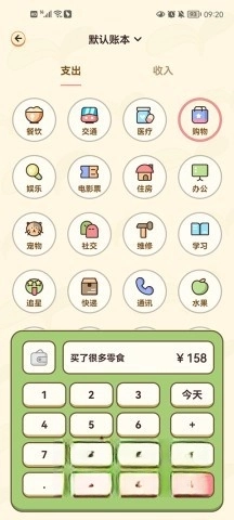 比如今天前往超市买东西,能够挑选购物的类型,添加金额用途的备注,接着填写金额和日期;