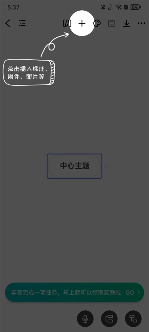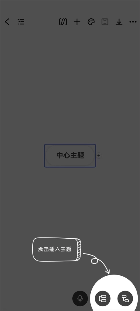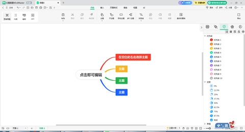 在空白舞台的中央位置会呈现【中心主题】选项,我们通过双击操作能够对它的内容与样式进行更改,而右键点击并选择【主题】选项,就可以为该中心主题添加分支主题。