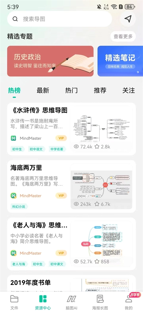 资源中心:汇聚海量优质思维导图,创作过程中还能掌握更多实用技巧。