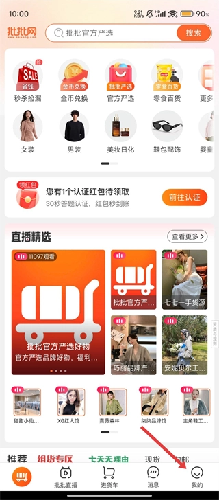 打开批批网后,我们可以点击右下角的【我的】选项,这可是联系客服的第一步呢。