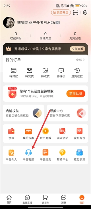 在个人主页里,我们找到【平台客服】这个选项并点击它,这样就可以准备和客服进行沟通了。