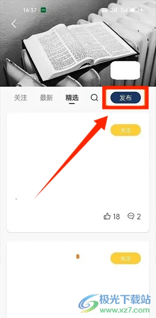 切换到精选页面,点击【发布】。