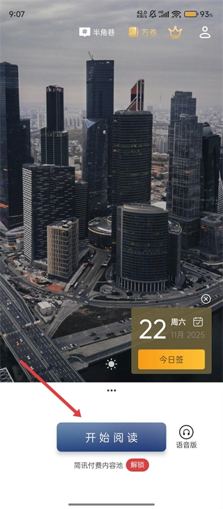 打开简讯后,先点击【今日签】完成签到,接着点击【开始阅读】,就能利用碎片时间进行阅读了。