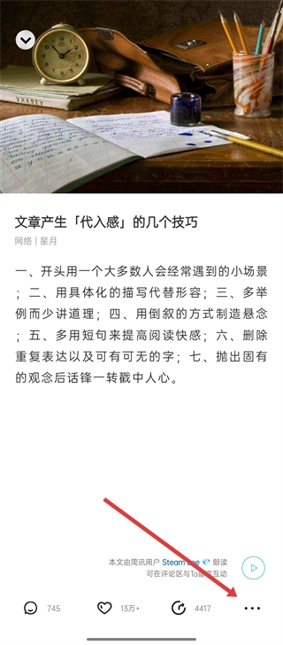 阅读文章时,要是想开展互动或者进行更多操作,点击右下角的三点按钮,就可以展开更多功能选项,以满足多样化的需求。