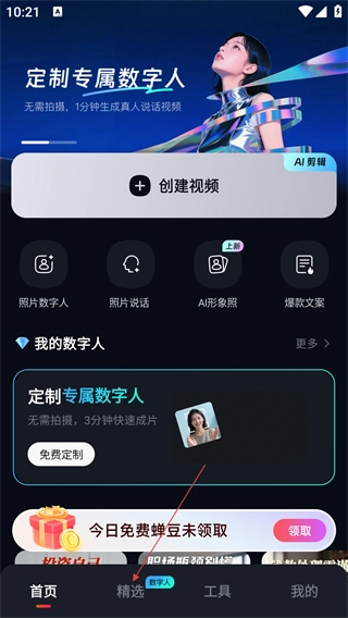 在首页中,点击底部【精选】功能。