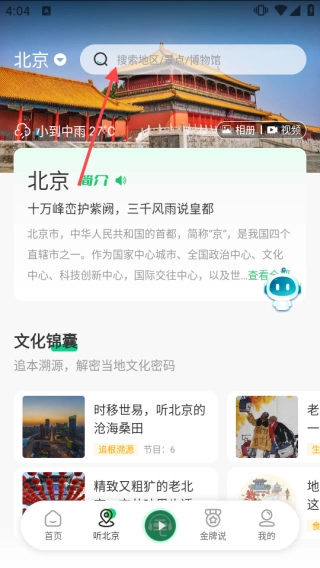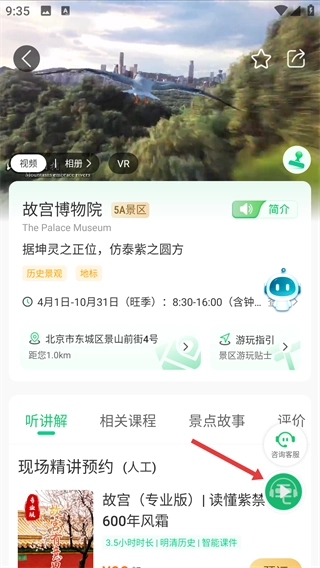 进入景点详情页面后,点击右下角那个绿色的播放按钮,就可以收听到【故宫博物院】的讲解内容,从而更深入地了解它的历史了。
