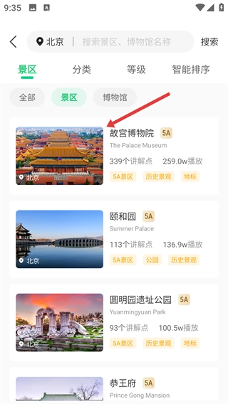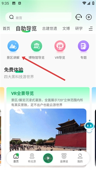进入【自助导览】页面后,点击【景区讲解】选项,即可查看各类景区与博物馆的导览内容。