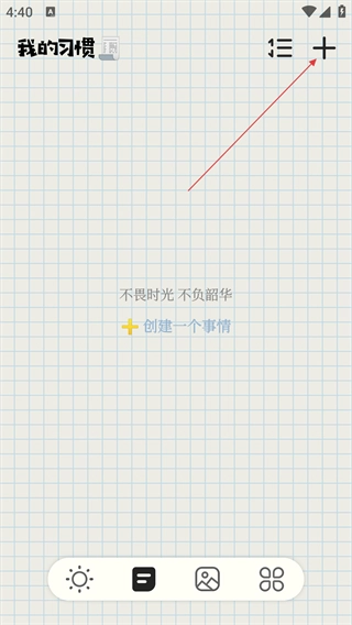 在“我的习惯”页面,点击右上角的“+”按钮,就能开启添加新习惯的编辑界面。