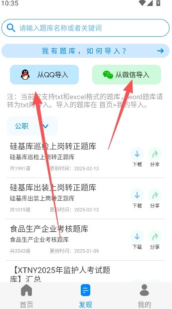 在软件发现页选择QQ或是微信的方式进行导入操作。
