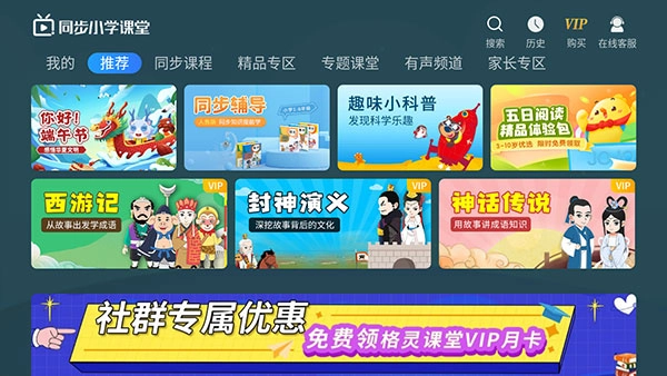 同步课程模块包含了小学各个年级的课程。